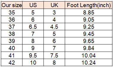 Women's Shoes Size Chart